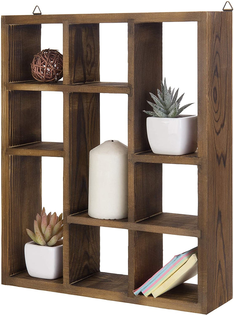 Amazon Com Mygift Rustic Shadow Box 9 Compartment Torched Wooden Freestanding Wall Mountable Knickknack Display Shelf Curio Shelves Home Kitchen